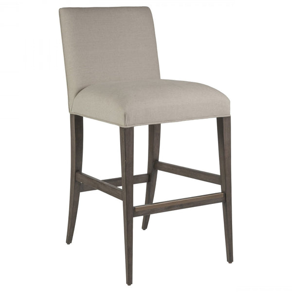 - Traditional upholstered, low back barstool crafted from mahogany and solid hardwoods.