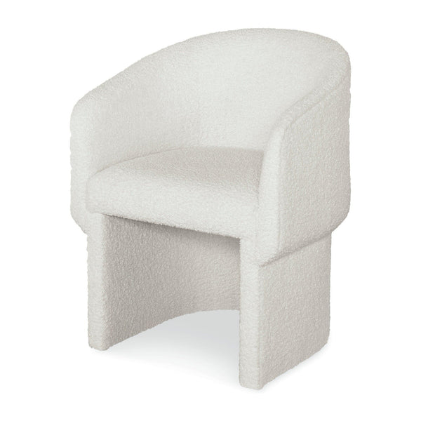 Crafted with meticulous attention to detail in an off-white boucle fabric, the gentle curves of the barrel back design provide excellent support white creating an enveloping seat.