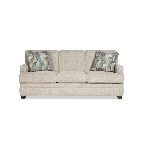 Casual modern styling and easy-to-live-with features make this sofa a perfect choice for your home. It features a tight, drawstring back and welted track arms. A classic 3 seat T-cushion configuration and modern wedge feet complete this inviting look. Matching loveseat, chair, ottoman and queen sleeper also available.