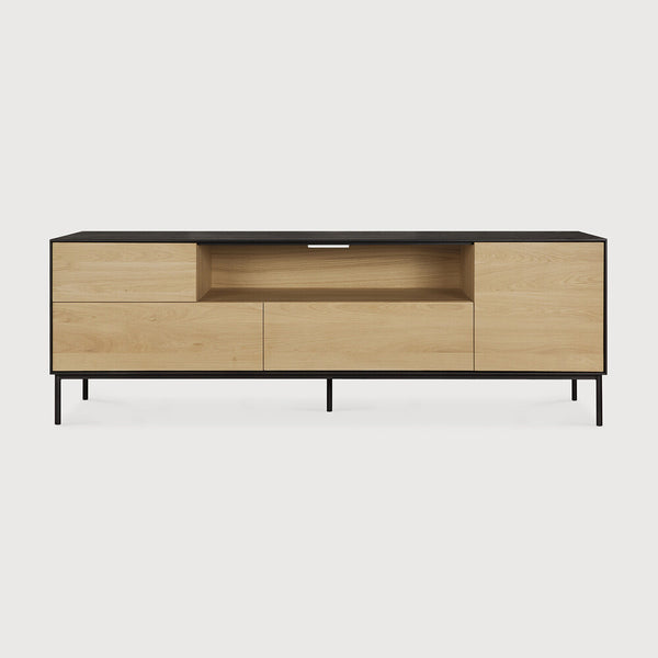 Made of solid oak, black tainted solid oak with a varnish finish and black metal legs.