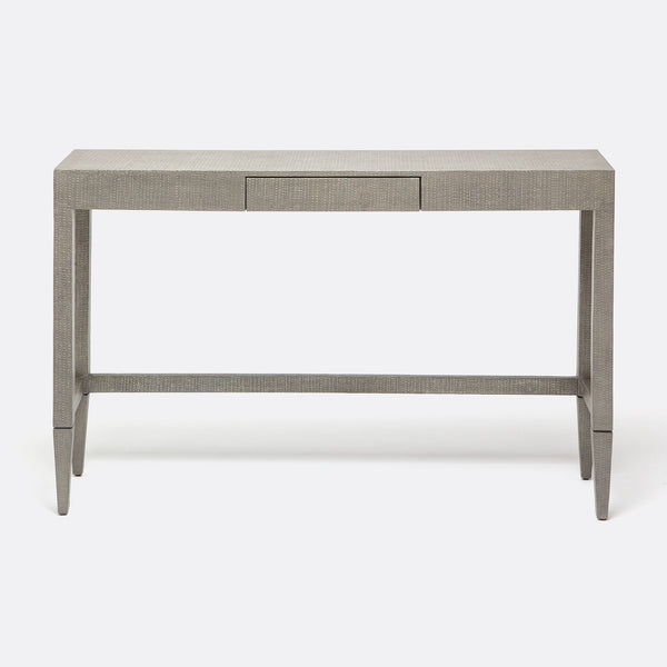 Introducing the Made Goods Conrad Console Table, a perfect blend of natural aesthetics and sophisticated design. The slight sheen of its hand-cast, raffia-like resin finish adds a hint of glamour to this versatile piece, making it a stylish addition to any space.