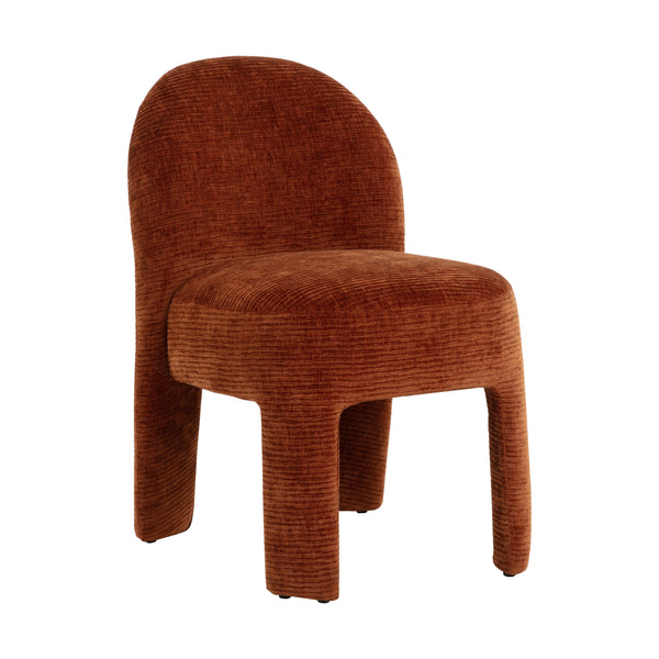 Enjoy the trendy and plush lines of the modern Myrtle Dining Chair. Artfully upholstered in rich textured fabric, this masterfully built dining chair is a true meeting of style and comfort with its sleek and modern curves and contours.